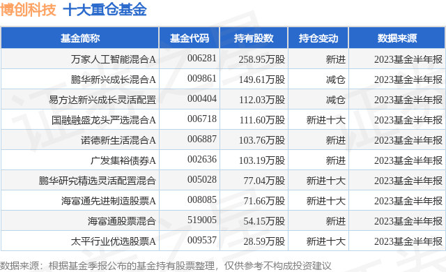 根据2023基金半年报公募基金重仓股数据,重仓该股的公募基金共86家,其中持有数量最多的公募基金为万家人工智能混合A。万家人工智能混合A目前规模为15.7亿元,最新净值1.8378(10月19日),较上一交易日下跌0.29%,近一年下跌3.45%。该公募基金现任基金经理为耿嘉洲。耿嘉洲在任的基金产品包括:万家远见先锋一年持有期混合A,管理时间为2023年7月11日至今,期间收益率为nan%。