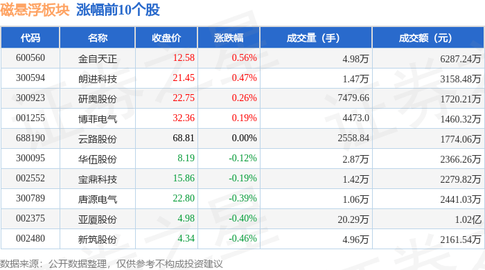 北向资金方面,当日磁悬浮板块北向资金持股市值为82.72亿元,减持0.49亿元。其中增持最多的是华自科技,增持了620.22万元。减持持最多的是中国中车,减持了0.23亿元。磁悬浮板块北向资金持股变动明细见下表: