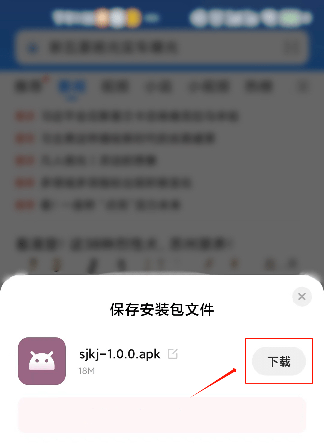 ②使用手机浏览器扫描二维码,跳出安装包文件后点击“下载”按钮,即可进行下载安装。