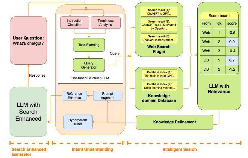 在提升数据质量上,百川智能的核心思路是“始终取优”,以低质、优质为标准将数据进行分类,确保Baichuan2-53B始终使用优质数据进行预训练;在信息获取方面,Baichuan2-53B对多个模块进行了升级,包括指令意图理解、智能搜索和结果增强等关键组件,通过深入理解用户指令,精确驱动查询词的搜索,最终结合大语言模型技术,优化模型结果生成的可靠性。