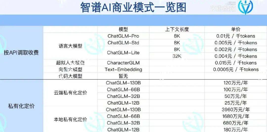 据光锥智能梳理发现,结合中国企业的落地情况,智谱AI的商业模式分为API调取收费和私有化收费模式。