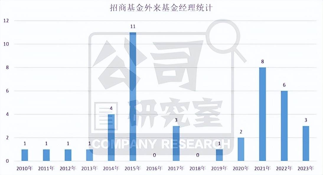 公司研究室注意到,早在2010年,招商基金就开始引进外部基金经理,随着时间的推移,引进人数与频次愈发密集,且越发向权益类产品管理人倾斜。