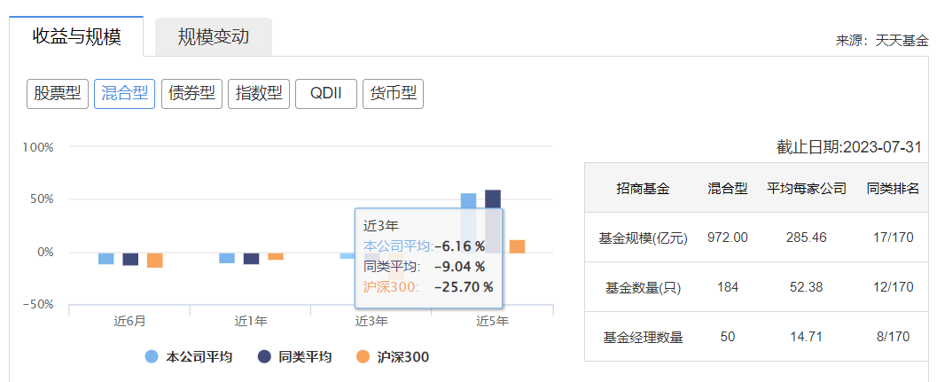 招商基金混合型基金近3年平均亏损6.16%,同类平均亏损9.04%,跑赢同行2.88%。