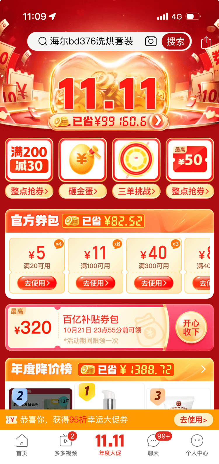 10月20日,拼多多“11.11”来临,消费者打开拼多多App即可直达大促会场/图源 拼多多