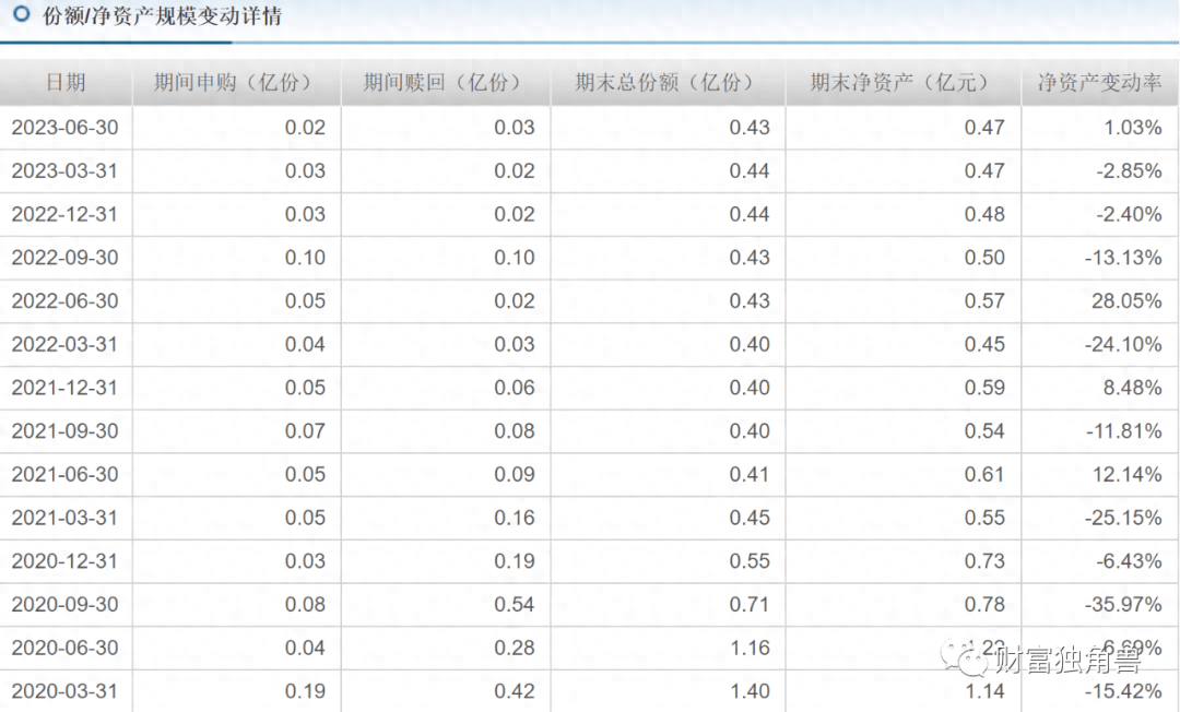 2016年3季度又被赎回了4.20亿份,刚成立就大额赎回,那这些资金进来的真实目的是什么?经历过2016年2、3、4季度的大额赎回,到了2016年4季度末,该基金期末净资产额仅剩3.96亿元,后面的每个季度都有份额被赎回。截至2023年6月30日,中邮低碳配置混合,期末净资产0.47亿元,比上期增加1.03%。