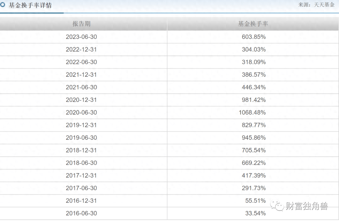 值得关注的是,中邮低碳配置混合基金成立以来至今,该基金高换手率也是被基民所诟病,2019年2、4季度的换手率分别达945.86%、829.77%。2020年2季度换手率曾高达1068.48%,2020年4季度也有981.41%;2023年2季度换手率也有603.85%。