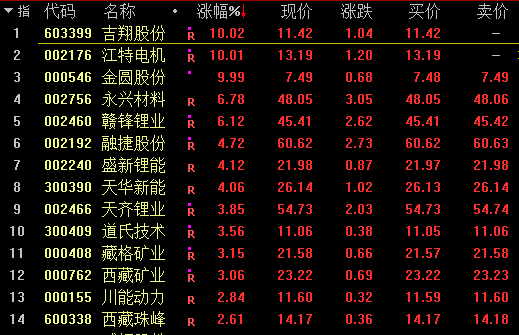 能源金属今日全线走强,锂矿板块盘中一度放量拉升逾3%,领涨两市。江特电机连续第2日涨停,近7个交易日4度涨停,10月以来逆势大涨48.54%;吉翔股份、金圆股份强势涨停。