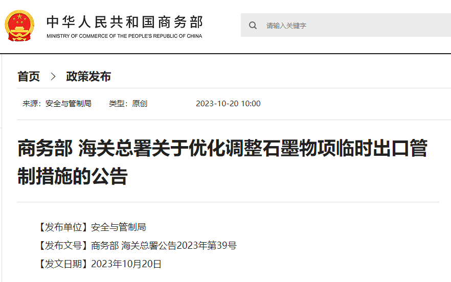 商务部还指出,对特定石墨物项实施出口管制是国际通行做法。中国作为全球最大的石墨生产国和出口国,长期以来,坚定履行防扩散等国际义务,根据维护国家安全和利益需要,依法对特定石墨物项实施出口管制,对部分石墨物项实施临时管制。近期,中国政府依据《出口管制法》规定,对石墨物项临时管制措施进行全面评估,并作出有进有出优化调整的决定,体现了统筹发展和安全的管制理念,有利于更好履行防扩散等国际义务,有利于保障全球供应链产业链安全稳定,有利于更好维护国家安全和利益。中方实施出口管制正常调整不针对任何特定国家和地区,出口符合相关规定的,将予以许可。