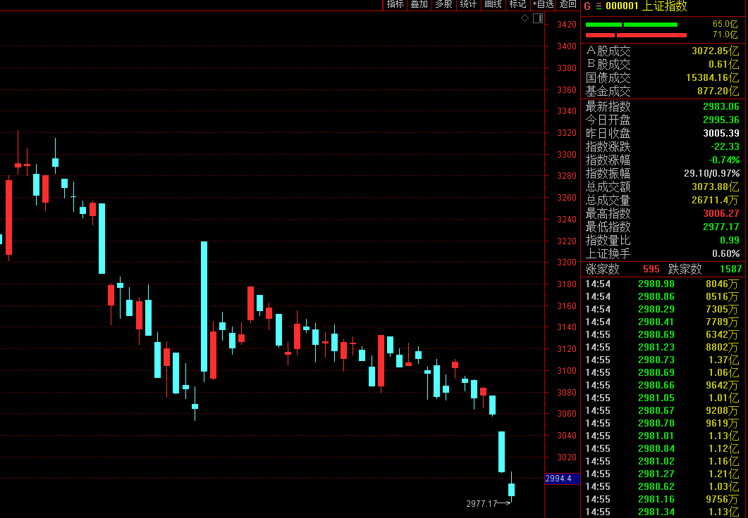 今日,A股继续低开低走,上证指数开盘即跌破3000点整数关口,盘初虽一度反弹,但午后再次节节下滑,不断创出年内新低。盘面上,锂矿、风电、房地产、地摊经济等板块逆势上扬,电信运营、6G概念、东数西算、信创等板块跌幅居前。北上资金净卖出16.46亿元。