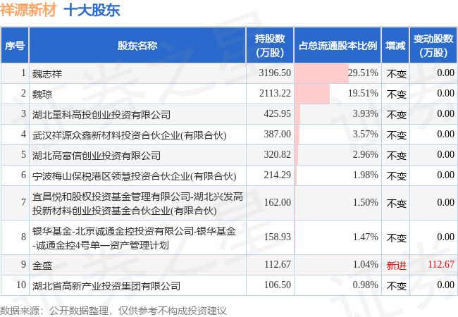 根据祥源新材2023年中报公布的十大股东详情如下: