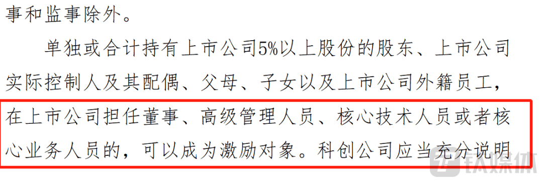 不过,根据相关规定,单独或合计持有上市公司5%以上股份的股东或实际控制人及其配偶、父母、子女,需要在上市公司担任董事、高级管理人员、核心技术人员或者核心业务人员才可以成为激励对象。