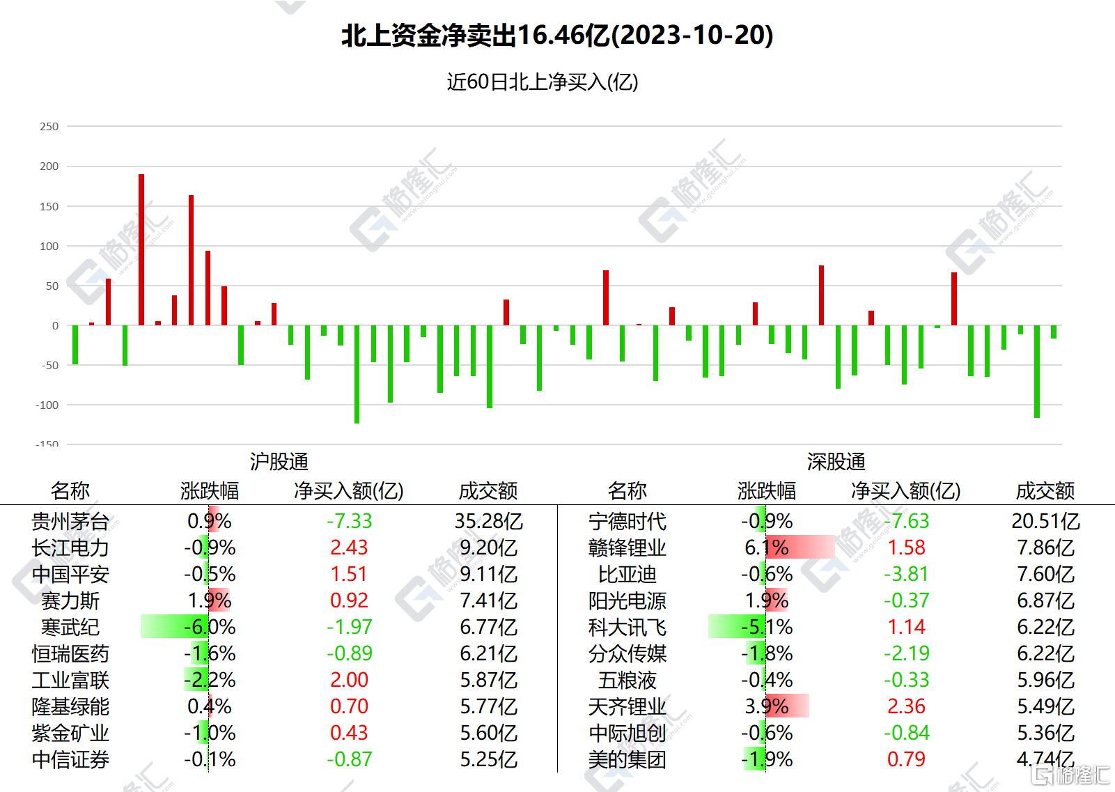 宁德时代、贵州茅台、比亚迪分别获净卖出7.63亿元、7.33亿元、3.81亿元。长江电力净买入额居首,金额为2.43亿元。
