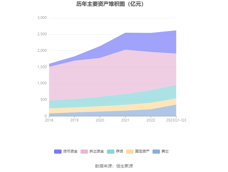 资产重大变化方面,截至2023年三季度末,公司拆出资金较上年末减少17.69%,占公司总资产比重下降9.18个百分点;货币资金较上年末增加21.22%,占公司总资产比重上升4.04个百分点;发放贷款和垫款较上年末减少43.65%,占公司总资产比重下降0.74个百分点;固定资产较上年末减少4.20%,占公司总资产比重下降0.54个百分点。