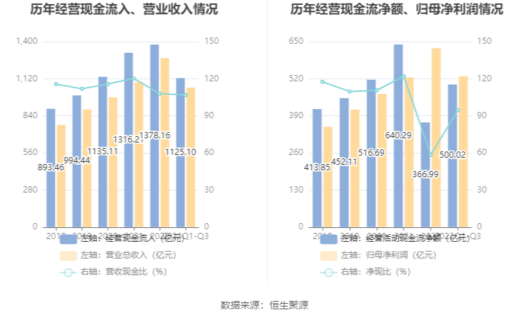 2023年前三季度,公司营业收入现金比为106.83%,净现比为94.56%。