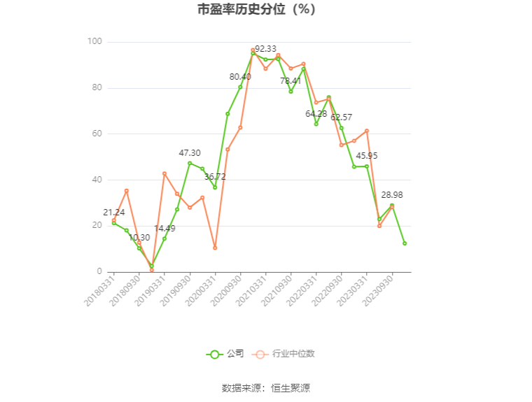 市盈率为负时,不显示当期分位数,会导致折线图中断。