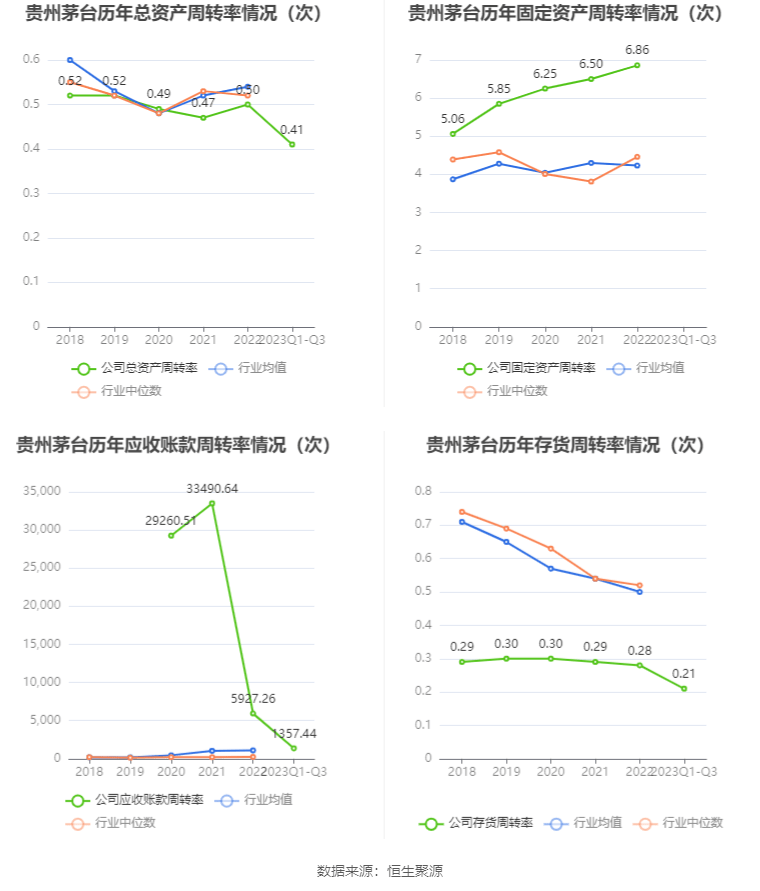 营运能力方面,2023年前三季度,公司公司总资产周转率为0.41次,上年同期为0.36次(2022年前三季度行业平均值为0.43次,公司位居同行业15/20);公司应收账款周转率、存货周转率分别为1357.44次、0.21次。