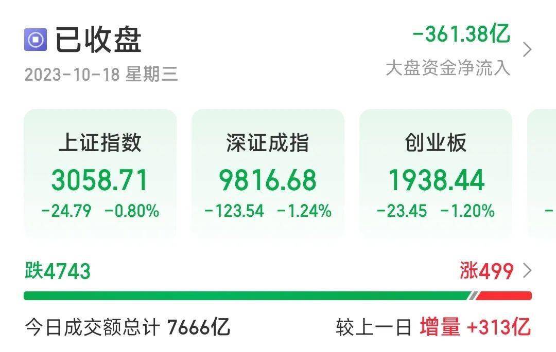 在昨日三大股指集体翻红后,今日(10月18日)又集体转绿,深成指再度失守10000点,两市超4700只个股下跌。