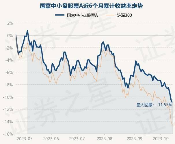证券之星消息,10月20日,国富中小盘股票A最新单位净值为2.346元,累计净值为3.3604元,较前一交易日下跌0.46%。历史数据显示该基金近1个月下跌4.73%,近3个月下跌6.28%,近6个月下跌10.95%,近1年下跌0.76%。该基金近6个月的累计收益率走势如下图: