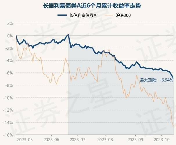 证券之星消息,10月20日,长信利富债券A最新单位净值为1.1674元,累计净值为1.2934元,较前一交易日下跌0.33%。历史数据显示该基金近1个月下跌1.58%,近3个月下跌4.27%,近6个月下跌6.9%,近1年下跌5.48%。该基金近6个月的累计收益率走势如下图: