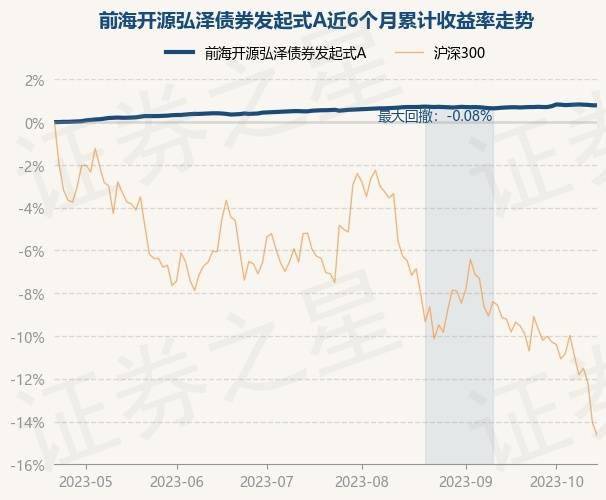 证券之星消息,10月20日,前海开源弘泽债券发起式A最新单位净值为1.311元,累计净值为1.806元,较前一交易日上涨0.0%。历史数据显示该基金近1个月上涨0.09%,近3个月上涨0.25%,近6个月上涨0.86%,近1年上涨1.38%。该基金近6个月的累计收益率走势如下图:
