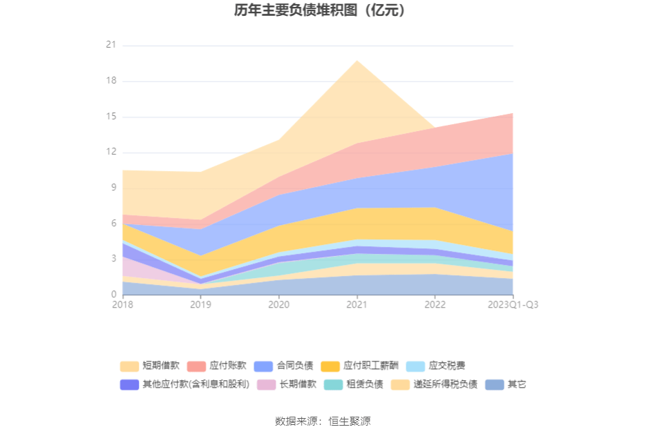 负债重大变化方面,截至2023年三季度末,公司合同负债较上年末增加91.99%,占公司总资产比重上升2.64个百分点,主要系报告期收到客户款项增加;应付职工薪酬较上年末减少29.90%,占公司总资产比重下降0.85个百分点;递延所得税负债较上年末减少34.78%,占公司总资产比重下降0.31个百分点;其他流动负债较上年末减少39.11%,占公司总资产比重下降0.23个百分点。