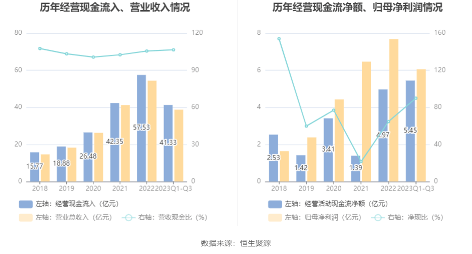 2023年前三季度,公司营业收入现金比为106.62%,净现比为89.94%。