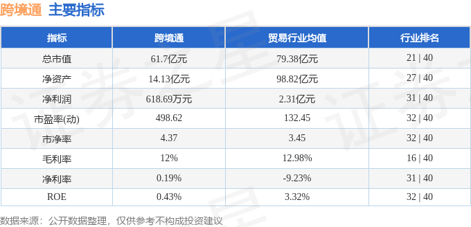 该股主要指标及行业内排名如下: