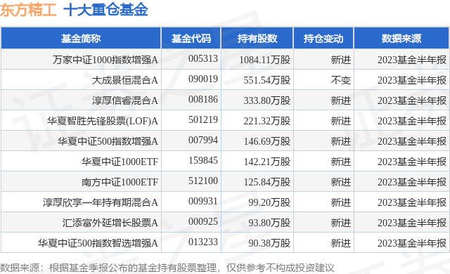 根据2023基金半年报公募基金重仓股数据,重仓该股的公募基金共89家,其中持有数量最多的公募基金为万家中证1000指数增强A。万家中证1000指数增强A目前规模为35.72亿元,最新净值1.1572(10月17日),较上一交易日下跌0.2%,近一年下跌5.61%。该公募基金现任基金经理为乔亮。乔亮在任的基金产品包括:万家量化睿选混合A,管理时间为2019年8月21日至今,期间收益率为23.17%;万家沪深300指数增强A,管理时间为2019年9月6日至今,期间收益率为24.09%;万家中证500指数增强A,管理时间为2019年9月6日至今,期间收益率为51.28%。