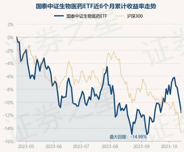 证券之星消息,10月20日,国泰中证生物医药ETF最新单位净值为1.0812元,累计净值为1.0812元,较前一交易日下跌1.6%。历史数据显示该基金近1个月下跌1.38%,近3个月下跌2.27%,近6个月下跌11.65%,近1年下跌11.84%。该基金近6个月的累计收益率走势如下图: