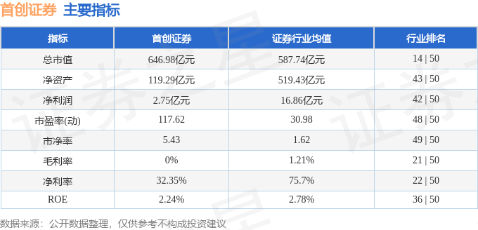 首创证券2023年中报显示,公司主营收入8.5亿元,同比上升12.08%;归母净利润2.75亿元,同比上升13.46%;扣非净利润2.73亿元,同比上升17.67%;其中2023年第二季度,公司单季度主营收入4.16亿元,同比下降7.67%;单季度归母净利润9913.03万元,同比下降37.62%;单季度扣非净利润9909.76万元,同比下降35.51%;负债率71.44%,投资收益3.43亿元。首创证券(601136)主营业务:证券经纪;证券投资咨询;与证券交易、证券投资活动有关的财务顾问;证券承销与保荐;证券自营;证券投资基金销售;证券资产管理;融资融券;代销金融产品;为期货公司提供中间介绍业务。