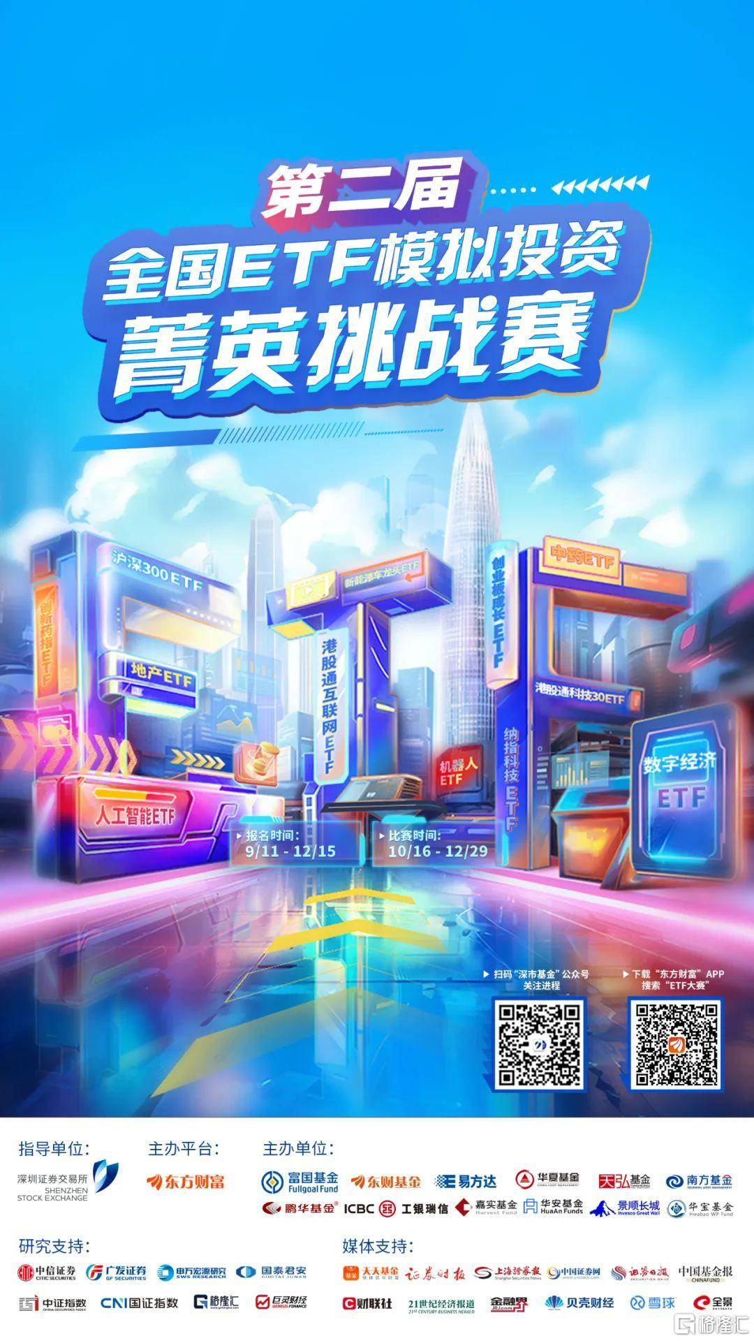 第二届全国ETF模拟投资菁英挑战赛正在火热进行中,整体赛程时长近三个月,比赛时间为2023年10月16日至12月30日, 12月15日前均可报名参赛。