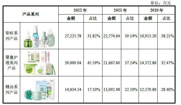 公开资料显示,润本生物创立于2006年,总部位于广州,主要从事驱蚊类、个人护理类产品的研发、生产和销售,目前已形成驱蚊产品、婴童护理产品、精油产品三大核心产品系列,具体产品包括电热蚊香液、驱蚊喷雾、婴儿手口湿巾、植物精油贴等。