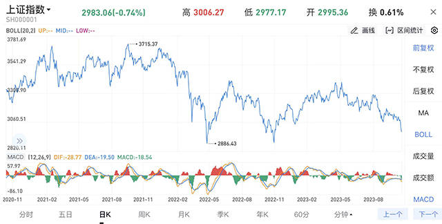 这是沪指自2022年10月28日以来,再度跌破3000点整数关口。上证指数在近10个交易日中,呈现出9根阴线,而10月20日的这个阴线则跌穿了重要支撑位。