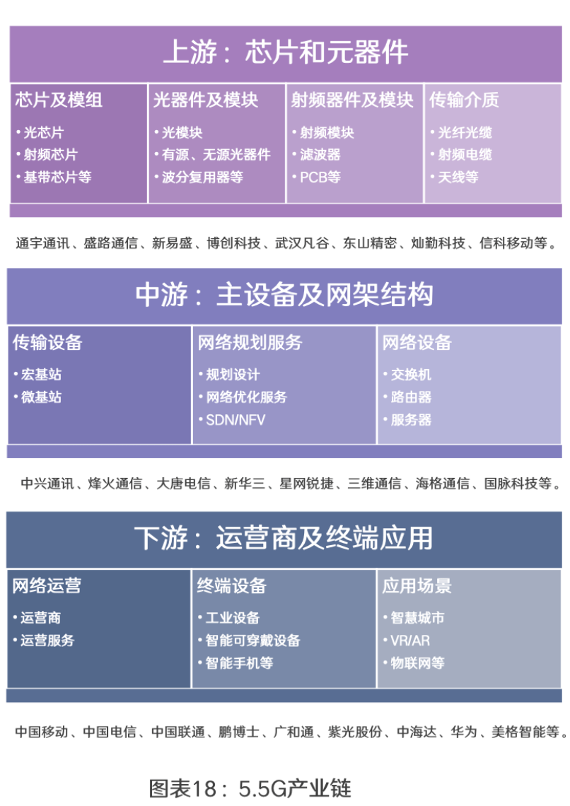 根据华鑫证券研报显示,5.5G产业链中涉及射频模块、滤波器、基站天线、基站建设与维护、通信设备零部件等多个环节。
