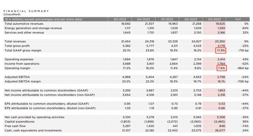 图片来源:特斯拉2023年第三季报