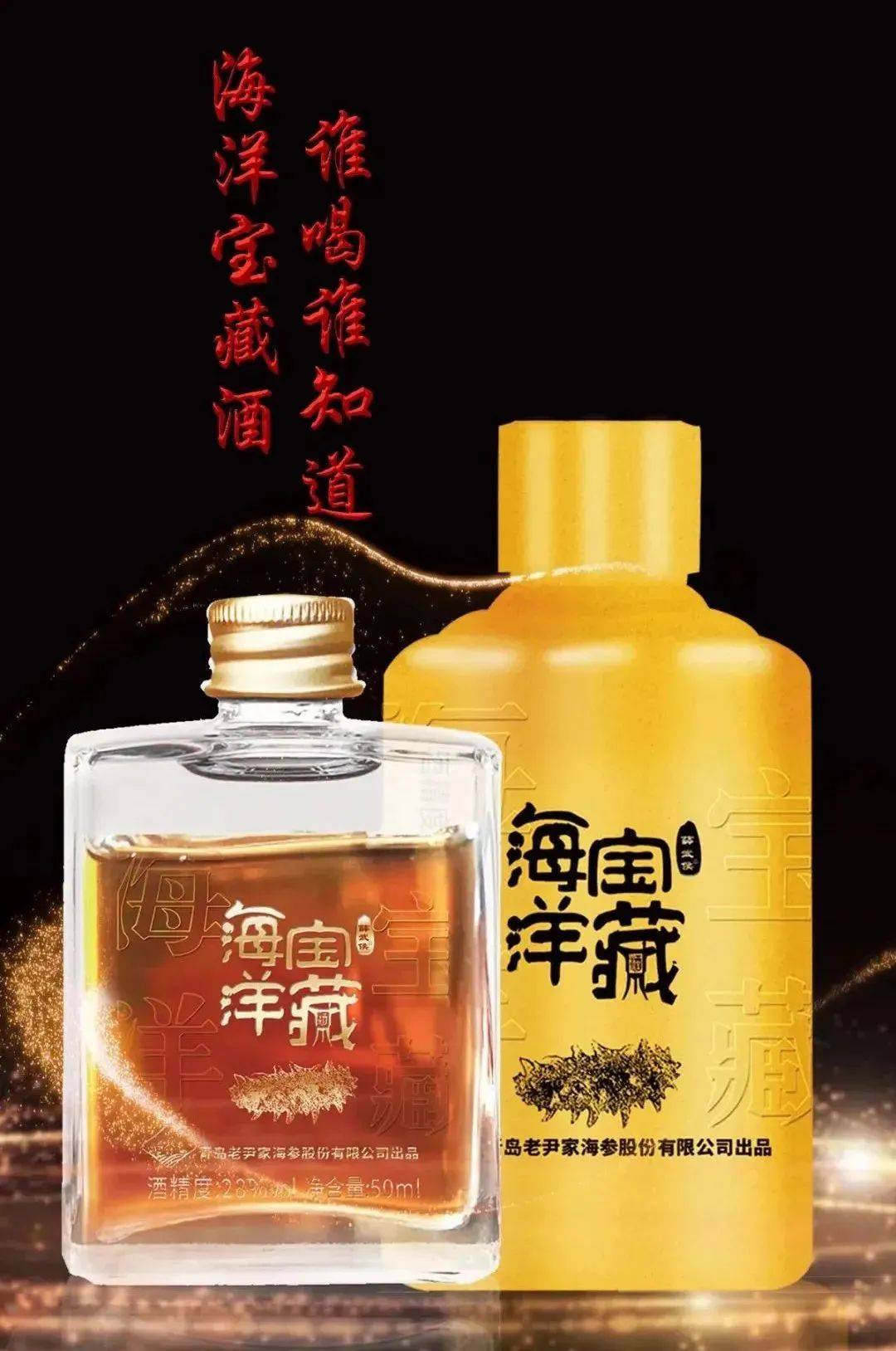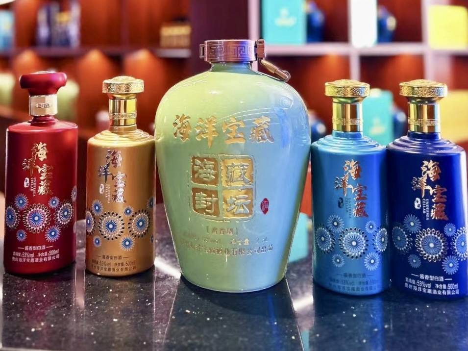 海洋宝藏酒是由海藏文化创始人尹宝昌与四位酿酒大师、一名资深潜水员联合打造的一款海藏文化酒,分为酱香酒和养生酒。酱酒有红钻、蓝翡、蓝钻、金钻、海藏封坛系列;养生酒分男女两款,由多种中草药与海参肽、岩藻多糖、海藻酵素配制而成。
