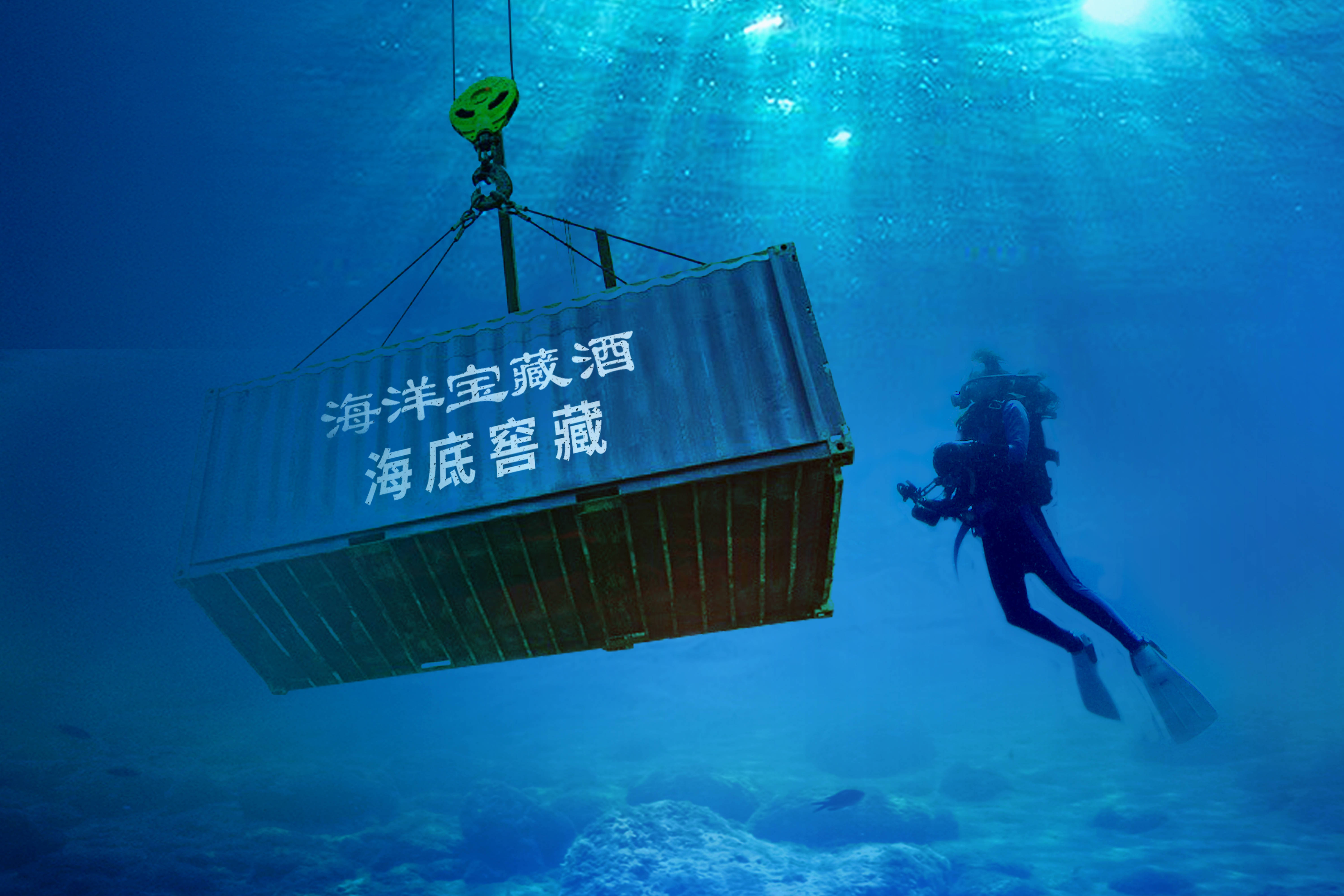海洋宝藏酒由由创始人尹宝昌与四位酿酒大师精诚合作,运用独特配方精心酿造,再让有30年潜水经验的海底观察员送至海底,以独特的“海藏”方式储存。