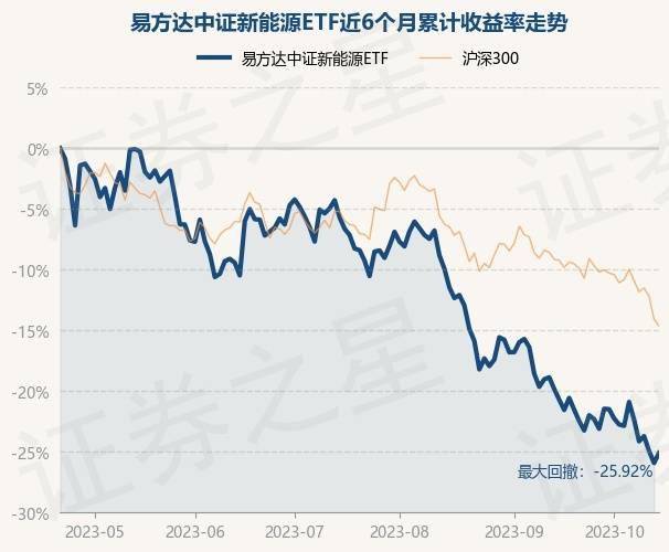 证券之星消息,10月20日,易方达中证新能源ETF最新单位净值为0.4243元,累计净值为0.8486元,较前一交易日上涨1.12%。历史数据显示该基金近1个月下跌3.37%,近3个月下跌18.23%,近6个月下跌25.08%,近1年下跌35.73%。该基金近6个月的累计收益率走势如下图: