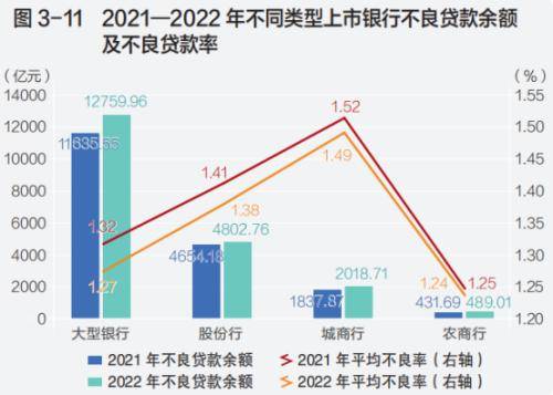 尽管不良贷款余额有所增加,但整体上仍然保持在可控范围内。《报告》显示,截至2022年末,已披露年报的58家上市银行平均不良贷款率为1.40%,同比下降0.02个百分点。