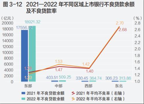 从不同区域看,中部区域上市银行不良贷款余额增幅最大、不良贷款率升幅最大,东部区域上市银行资产质量改善较大。