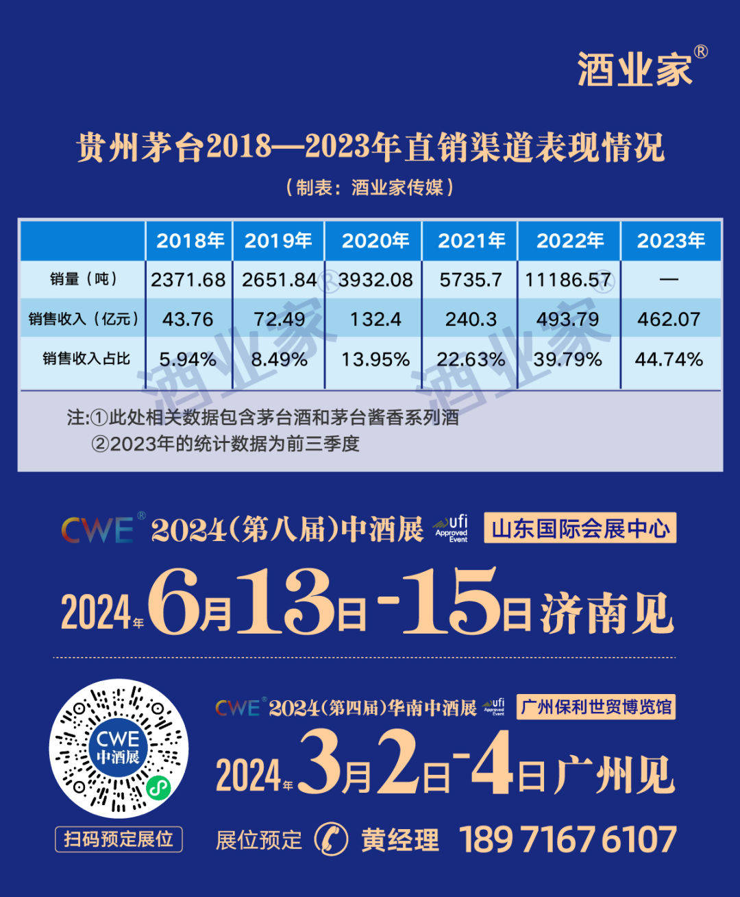 值得注意的是,今年以来,直销在茅台营收中的占比在不断提升,无论是一季度报、半年报还是本次三季度报,直销在茅台的营收中占比始终在45%左右,相较2022年全年的39.79%,提升了接近5%。