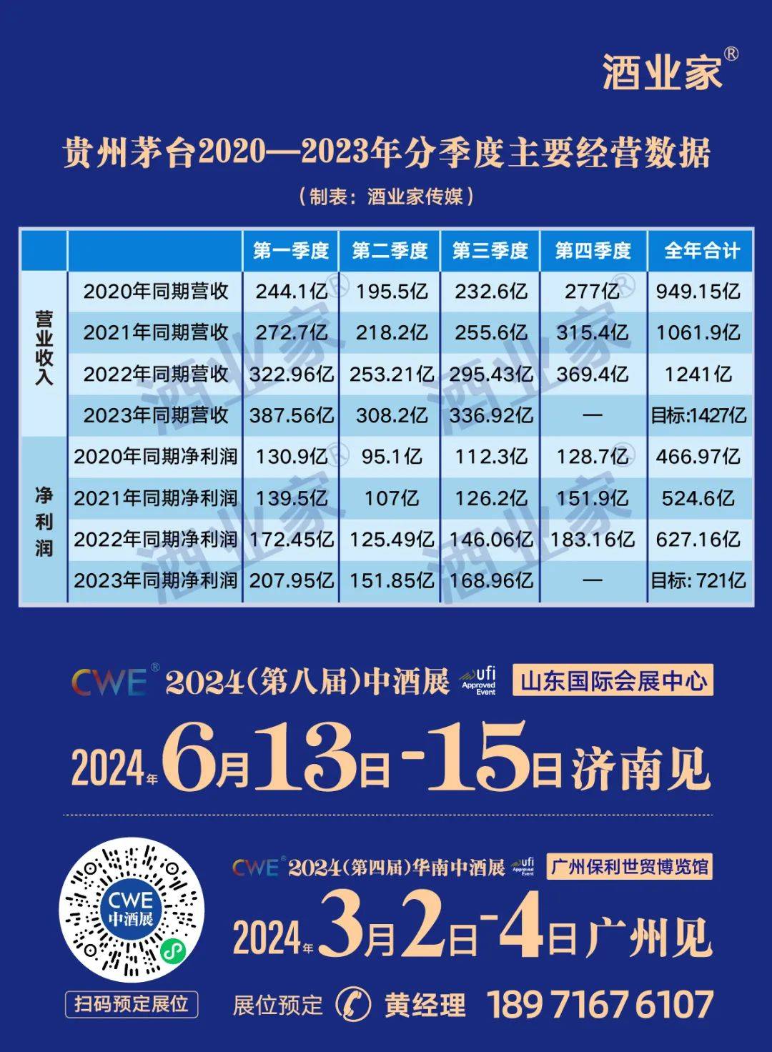 仅仅两年时间,在2023年,茅台有望实现全年单季度营收均突破300亿、净利润均突破150亿的跨越式提升。