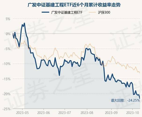 证券之星消息,10月18日,广发中证基建工程ETF最新单位净值为1.0608元,累计净值为1.0608元,较前一交易日下跌1.58%。历史数据显示该基金近1个月下跌6.08%,近3个月下跌12.95%,近6个月下跌21.63%,近1年上涨0.34%。该基金近6个月的累计收益率走势如下图: