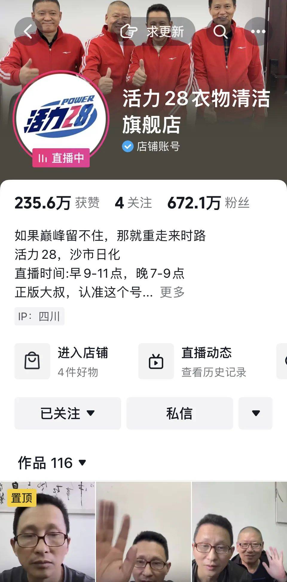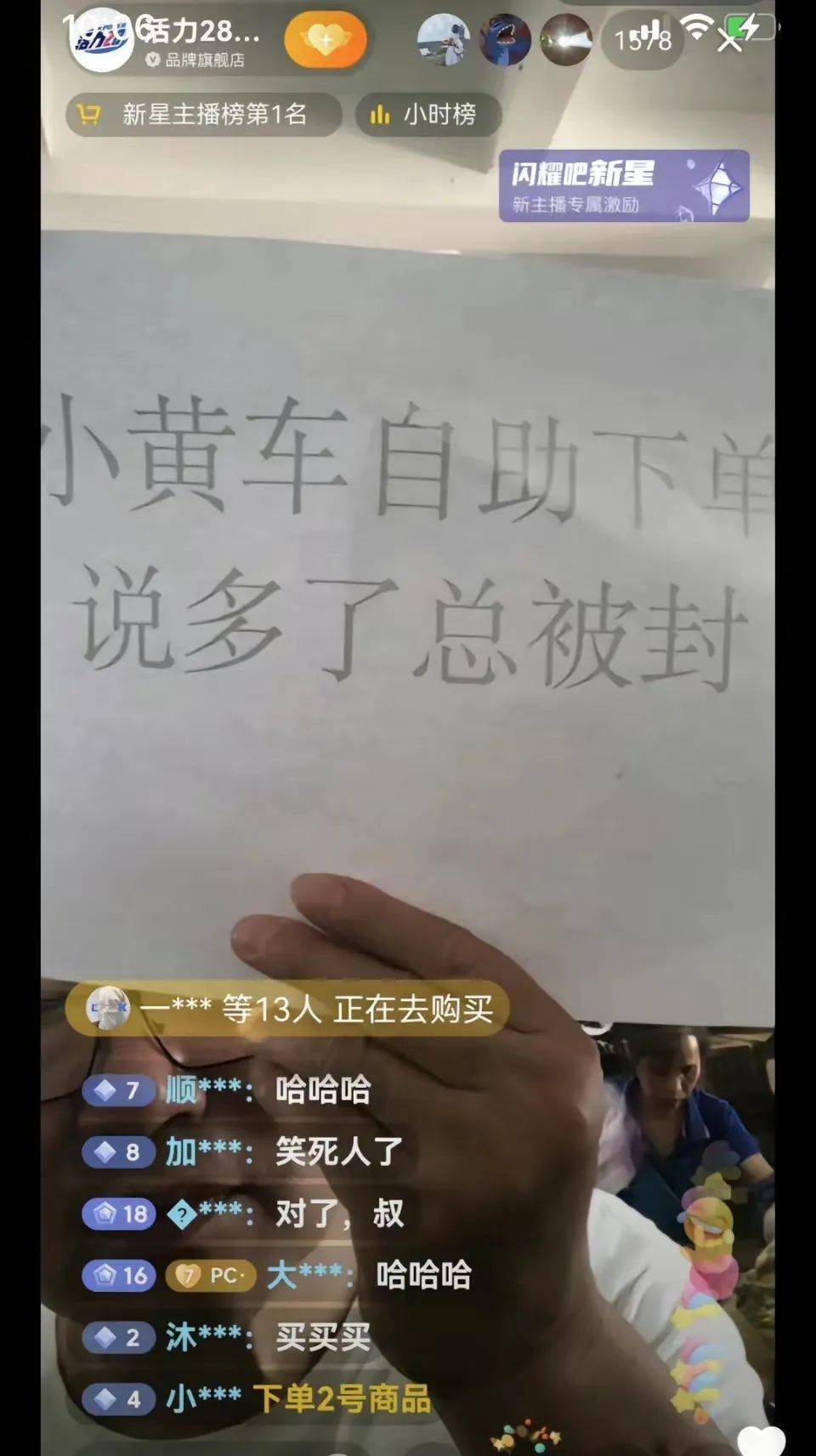 在短视频平台上,活力28的直播名场面广为流传。刚开始直播,大叔们不知道直播间的规则,一天被封了三四次,后来只好举个“小黄车自助下单,说多了总被封”的牌子;下播时,大叔说完“明早7点半上播”就背包走人,最后还是仓库管理员现场咨询网友如何下播;直播间的小黄车(链接)经常走失,大叔们一脸疑惑“问一下小黄车到哪里去了”……