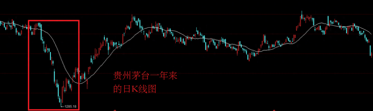 而从贵州茅台的日K线图上看,现在的情况只是去年同期情况的一半。