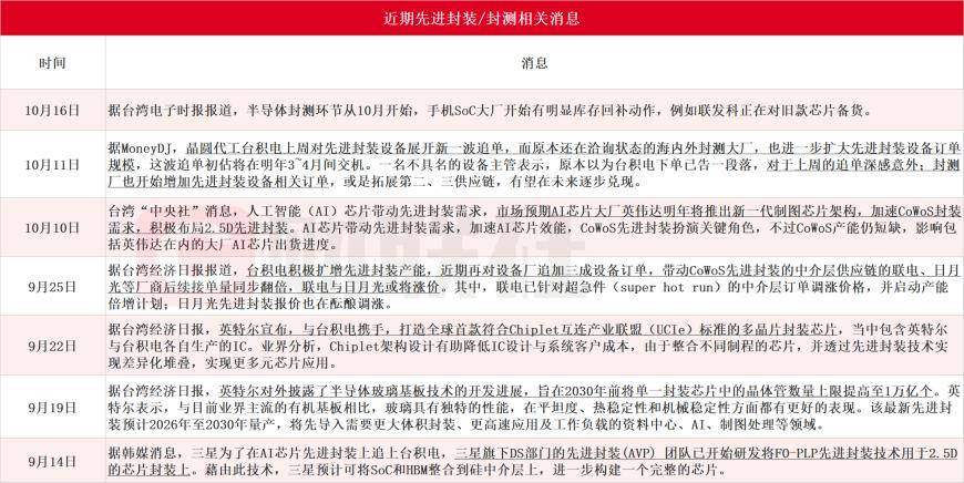 封测为我国集成电路领域最具国际竞争力的环节,天风证券7月研报指出,AI需求全面提升带动先进封装需求提升,台积电启动CoWoS大扩产计划,部分CoWoS订单外溢,封测大厂有望从中获益,Chiplet/先进封装技术有望带动封测产业价值量提升。兴业证券亦认为,先进封装为封测行业复苏叠加成长性,ChatGPT的发展有望推动Chiplet技术渗透率提高。