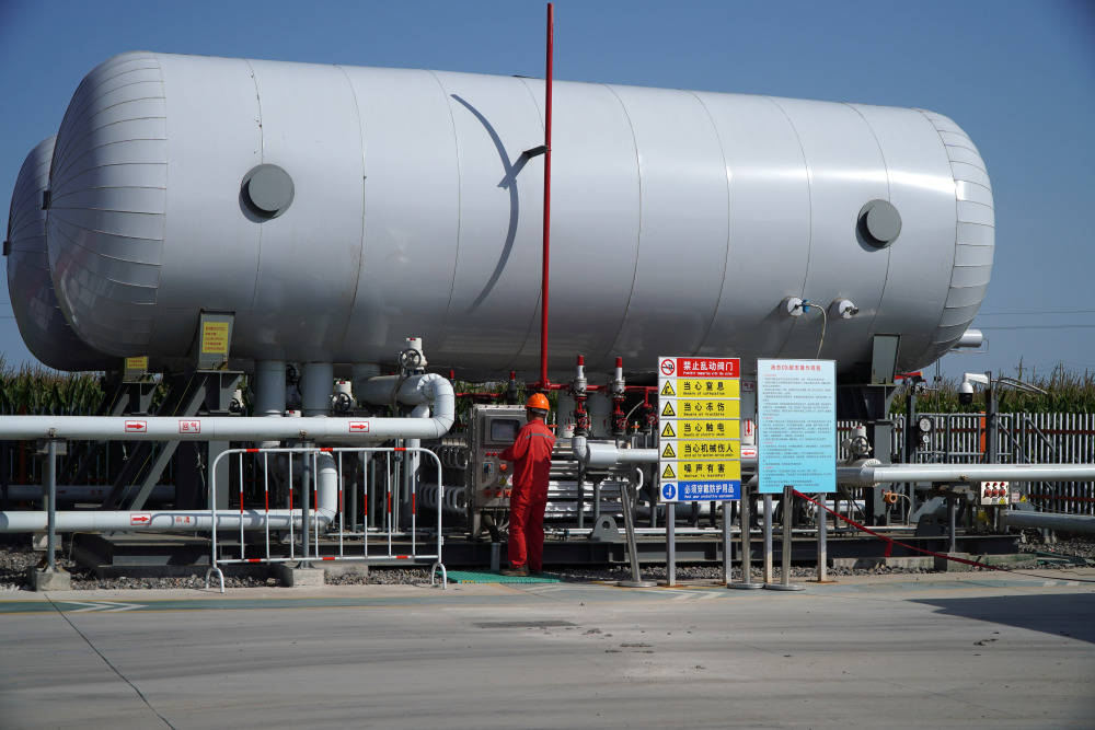 在位于山东省淄博市高青县的齐鲁石化—胜利油田百万吨级CCUS项目10号注气站,一名工作人员在检查设备。新华社记者徐速绘摄