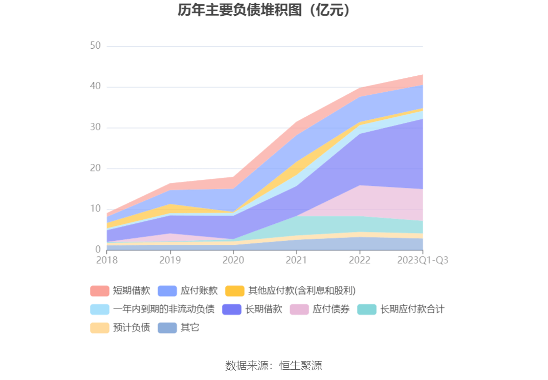 负债重大变化方面,截至2023年三季度末,公司长期借款较上年末增加36.47%,占公司总资产比重上升5.77个百分点,主要系本期取得银行借款;长期应付款合计较上年末减少20.49%,占公司总资产比重下降1.49个百分点;应付账款较上年末减少7.37%,占公司总资产比重下降1.17个百分点;短期借款较上年末增加13.62%,占公司总资产比重上升0.27个百分点。