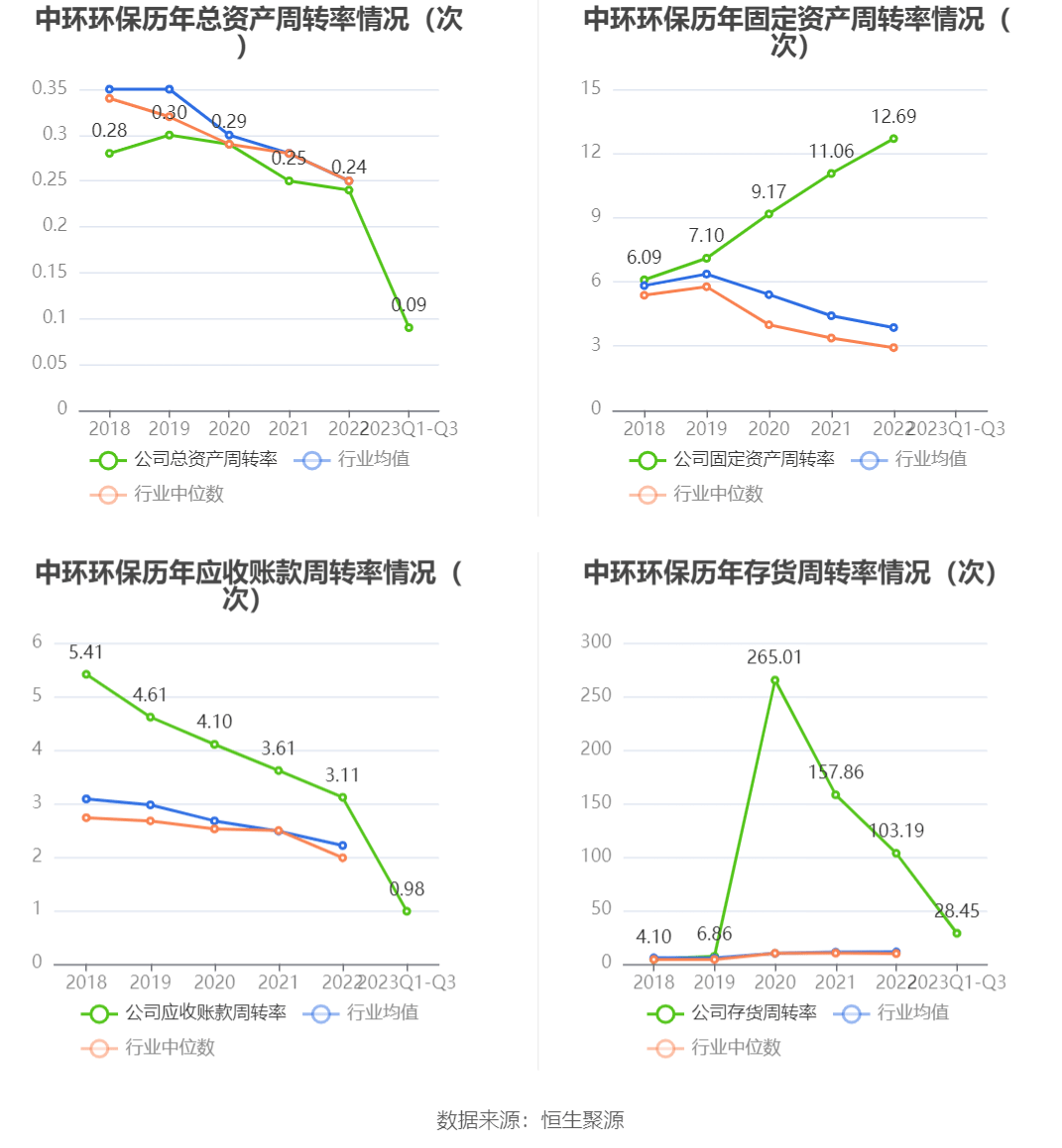 营运能力方面,2023年前三季度,公司公司总资产周转率为0.09次,上年同期为0.16次(2022年前三季度行业平均值为0.17次,公司位居同行业27/50);公司应收账款周转率、存货周转率分别为0.98次、28.45次。