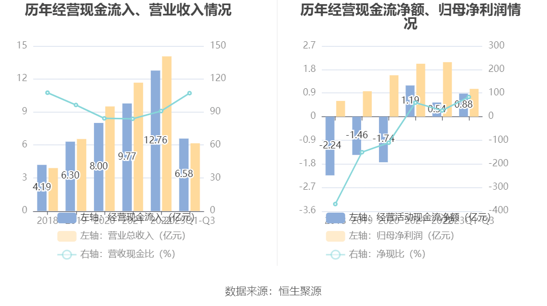 2023年前三季度,公司营业收入现金比为107.05%,净现比为83.49%。